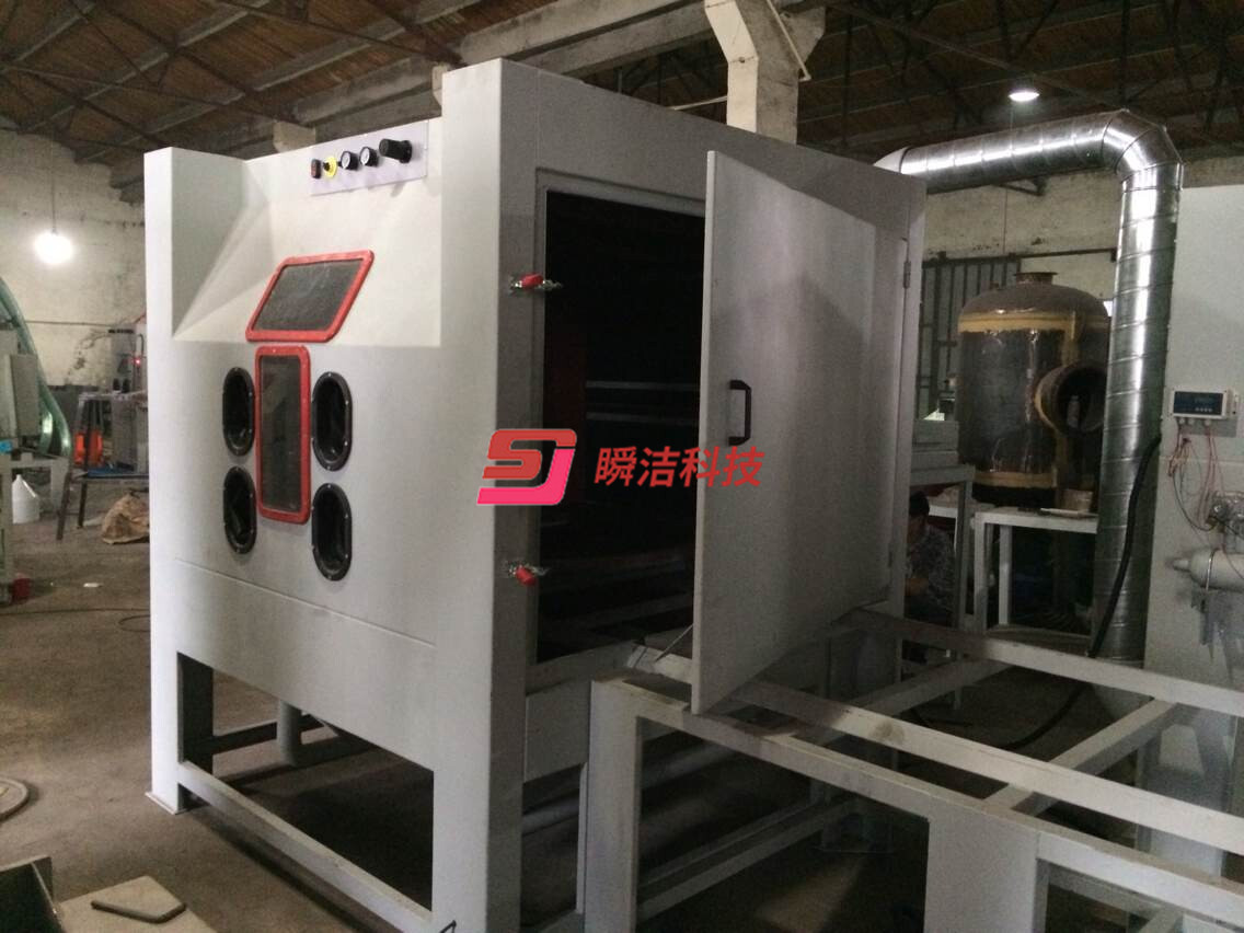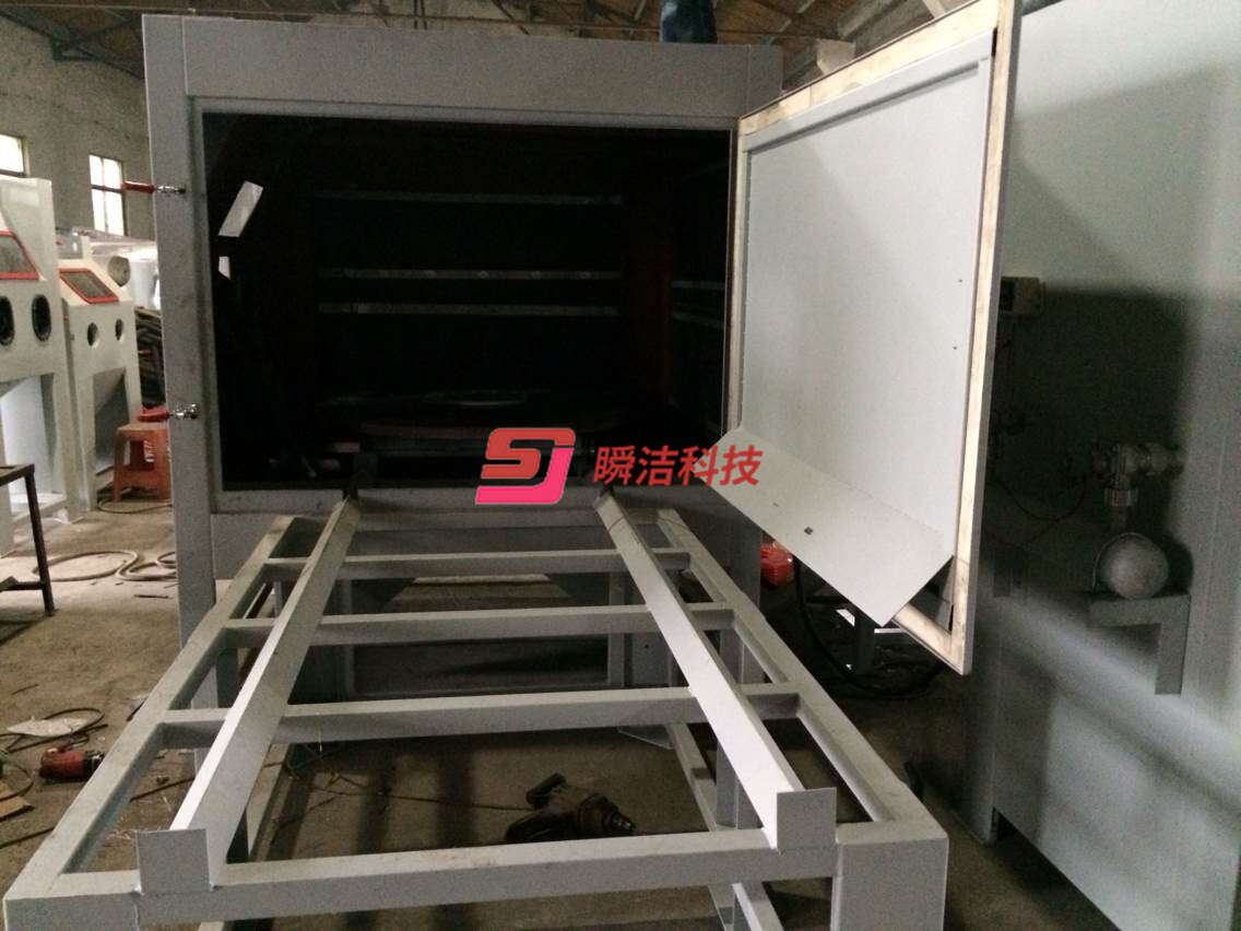 、配備活動(dòng)臺(tái)車,和轉(zhuǎn)盤,操作時(shí)將工件放在轉(zhuǎn)盤上,然后推入機(jī)內(nèi)即可噴砂作業(yè),操作簡(jiǎn)單省力。