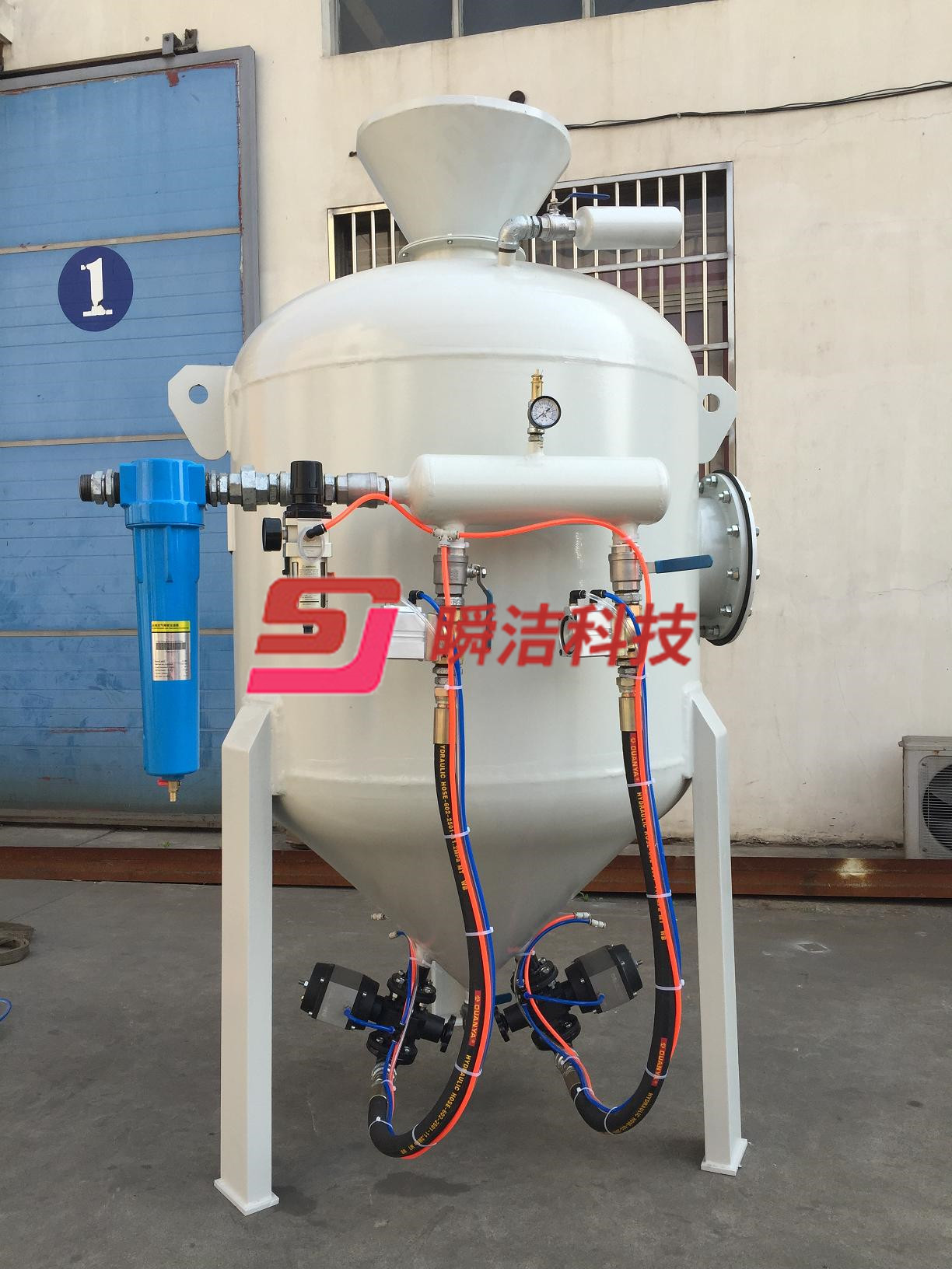 2、本機采用了直通型噴砂閥,徹底解決了磨料的堵塞,噴砂出口的速度可達200M/S