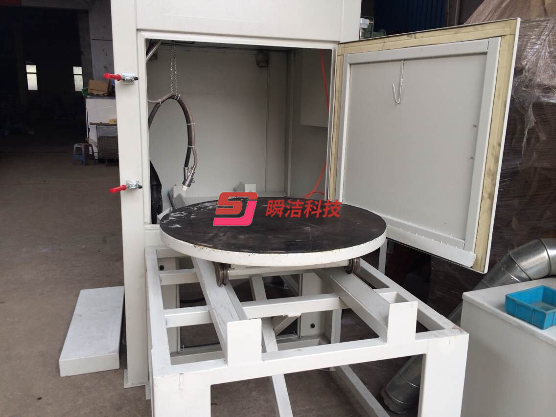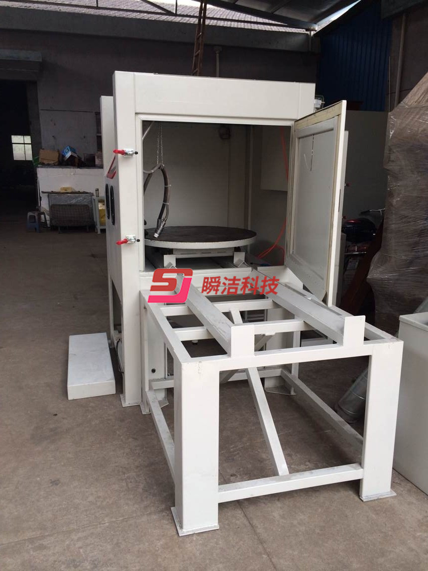 3、配備活動(dòng)臺(tái)車(chē),和轉(zhuǎn)盤(pán),操作時(shí)將工件放在轉(zhuǎn)盤(pán)上,然后推入機(jī)內(nèi)即可噴砂作業(yè),操作簡(jiǎn)單省力。
