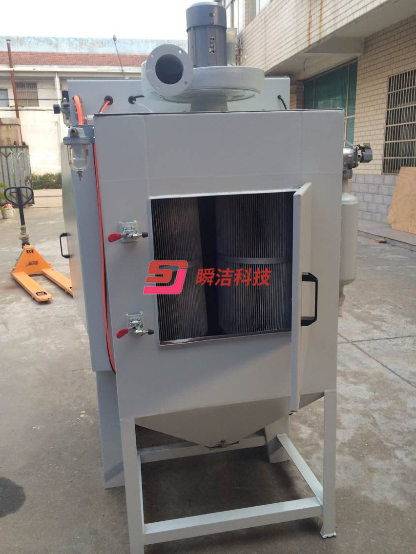 、配備活動臺車,和轉盤,操作時將工件放在轉盤上,然后推入機內即可噴砂作業,操作簡單省力。