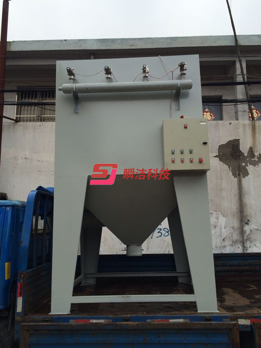 含塵氣體經過分離器和連接管道進入除塵器,含塵氣體在除塵器罩殼的作用下形成旋風,塵流碰撞到除塵器進氣口處的導流板上,并沿著擋板往下流動到濾筒底部一下,大顆粒順流沉降在灰斗內,帶有小顆?;覊m的氣流由于除塵器出風口的離心式抽風機產生的不帶內負壓,經濾筒過濾后通過除塵器出風口排除,完成除塵效果。除塵器的旋轉反吹系統以固定頻率完成濾筒的反沖洗工作,使得布袋上的灰塵能及時掉落,避免結塊堵塞,提高濾筒使用周期和使用壽命,也提高了除塵器的工作效率和除塵質量。