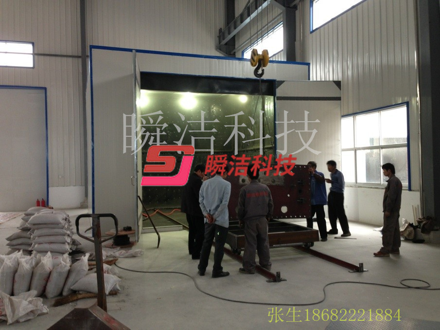 11、         適用范圍:大型鑄造鍛件、焊接鋼結構、變壓器油箱、工程機械、機車車輛、鍋爐制造、化工機械、船舶修造等噴砂除銹