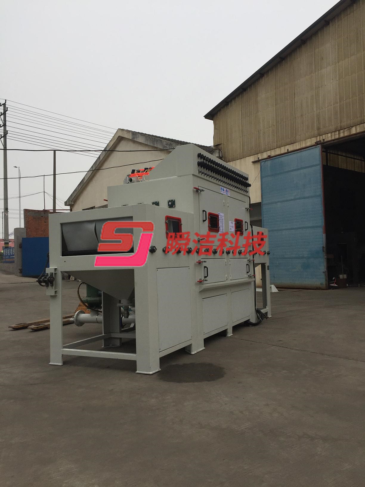 7、  出料口安裝噴淋清洗,循環再利用,保證工件表面磨料無殘留。